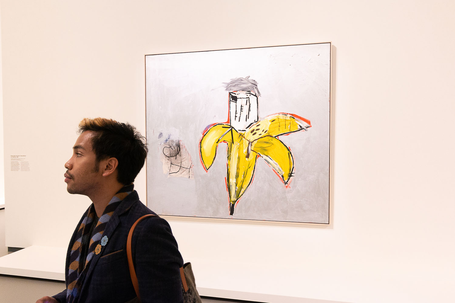 et se prénomme Jean-Michel Basquiat.À peine l’enfance s’achève qu’il décide de quitter l’école et le foyer, pour finalement se retrouver dans la rue… Mais ce sont les murs de la ville de New-York qui lui serviront de premières toiles. Son art est différent. Il est à la fois figuratif et poignant, parfois même agressif avec des messages forts. Une manière de dénoncer ce qu’il voit au quotidien : le racisme, la ségrégation sociale et économique (nous sommes dans les année 80). Très vite, Basquiat est repéré par ses contemporains et sort de l’ombre. Cet autodidacte devient par la suite le petit protégé de Warhol. Il est le premier peintre noir à avoir fait une carrière internationale.