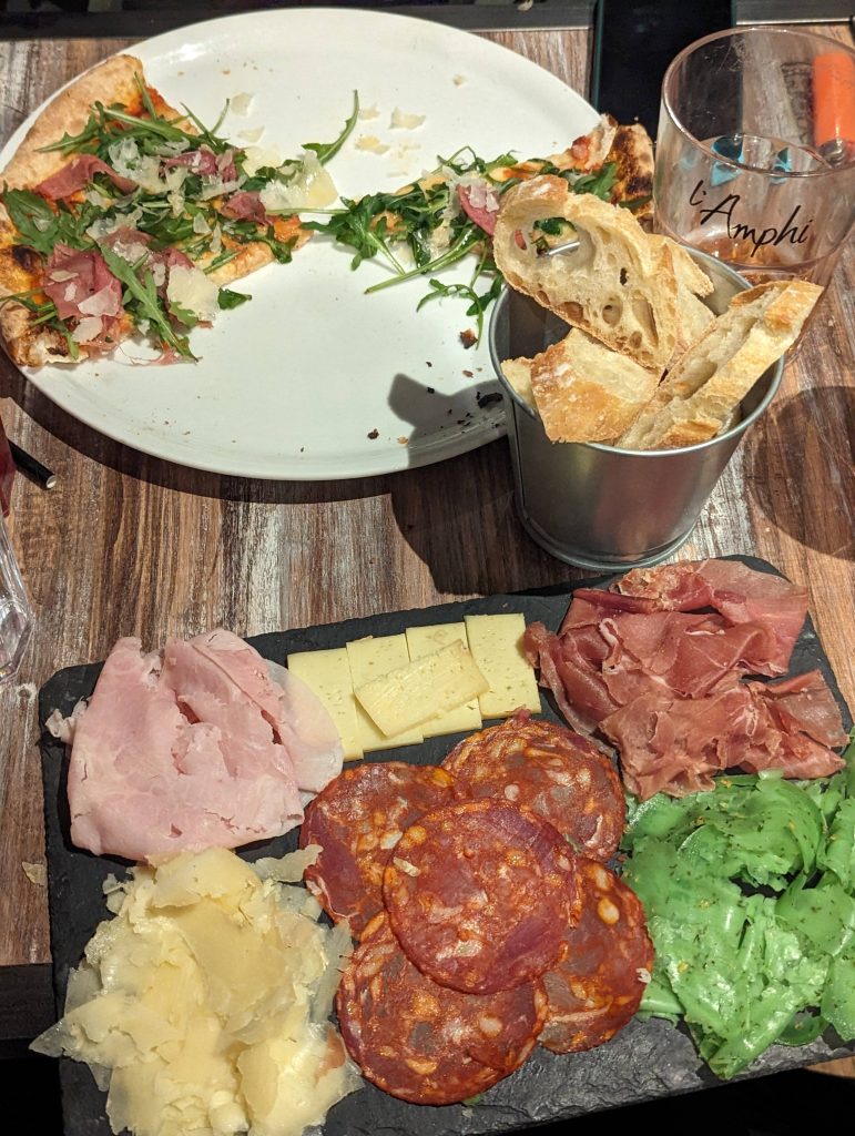 Maintenant, un vent du sud souffle sur cet endroit, et tout a changé… en mieux ! Ce soir-là, avec mes amis, dès que nous avons franchi la porte de l’Amphi, j’ai été immédiatement séduit par l’ambiance décontractée et ensoleillée qui régnait entre ces quatre murs. À l’étage, il est même possible de privatiser. Si vous décidez d’y aller, vous remarquerez que les murs blancs et les touches de bleu m’ont rappelé mes journées ensoleillées à Aix-en-Provence (ou à Marseille, pour les initiés)…