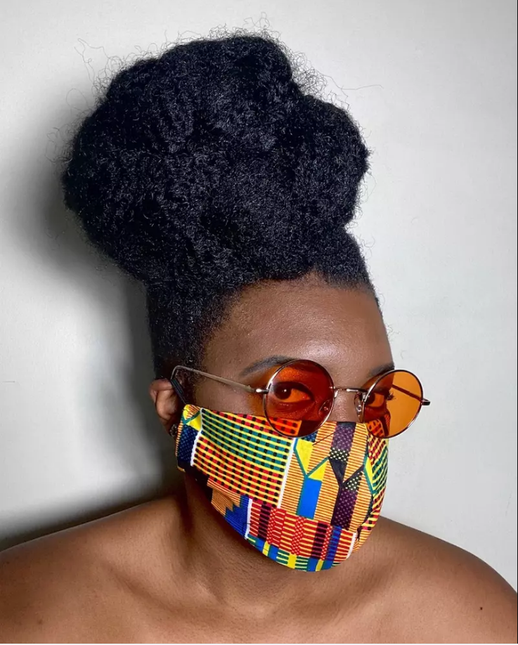 Dans les mêmes tons, nous pouvons également retrouver sur la plateforme Afrikrea, des masques de all-things-ankara, en tissus africains, dont le Kente, un mélange coloré de coton et de soie.