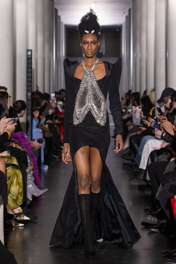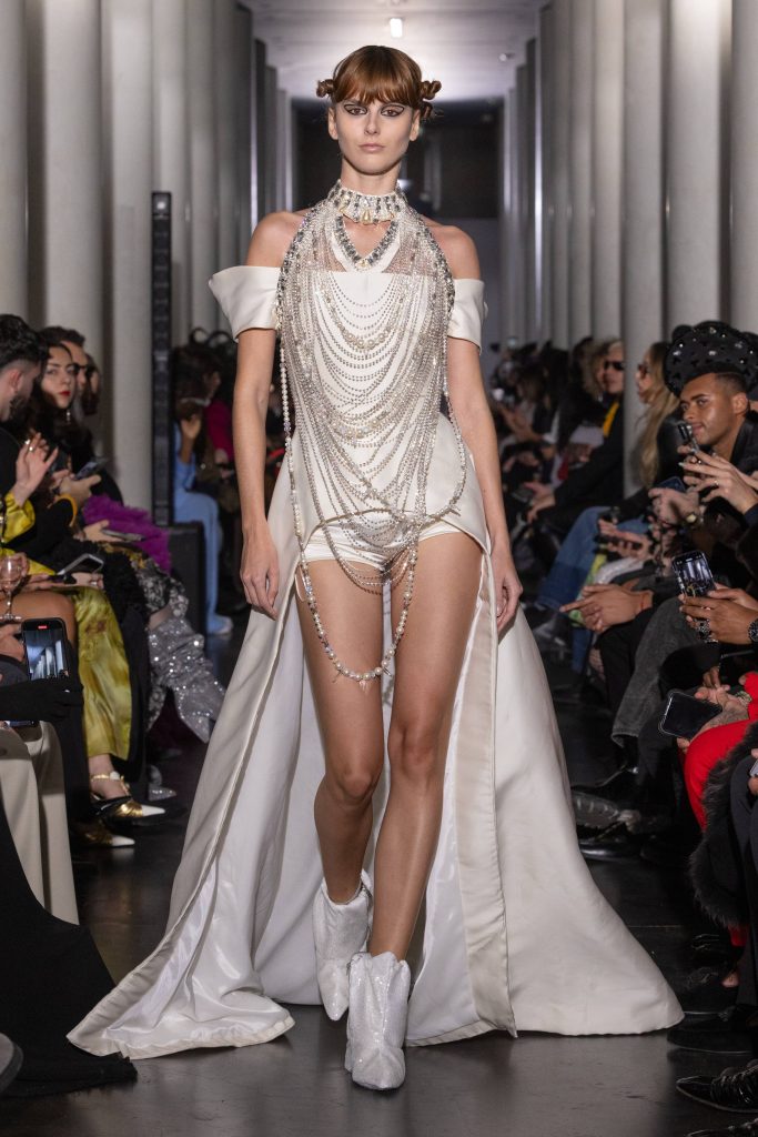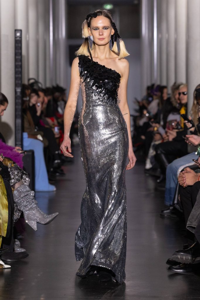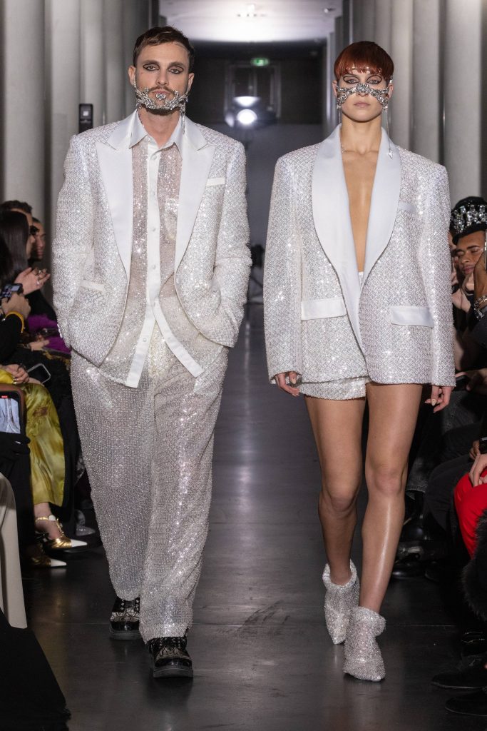 Chaque création qui défile est une expérience visuelle unique. Ce qu’on retient ? EXIT le mix Black and Gold. La nouvelle tendance est au silver … Il était temps ! Cette collection Illusion est à la fois plus sombre et glamour. Sans oublier l’ADN de la marque : fantaisie et surprise. Oui car, sans s’y attendre, on voit apparaître dans ce défilé plutôt dark, des silhouettes en jean et autres matières qui rappellent un beau ciel bleu. Comme une rencontre de l’espace et des cieux. Le réel et l’imaginaire se mêlent encore.