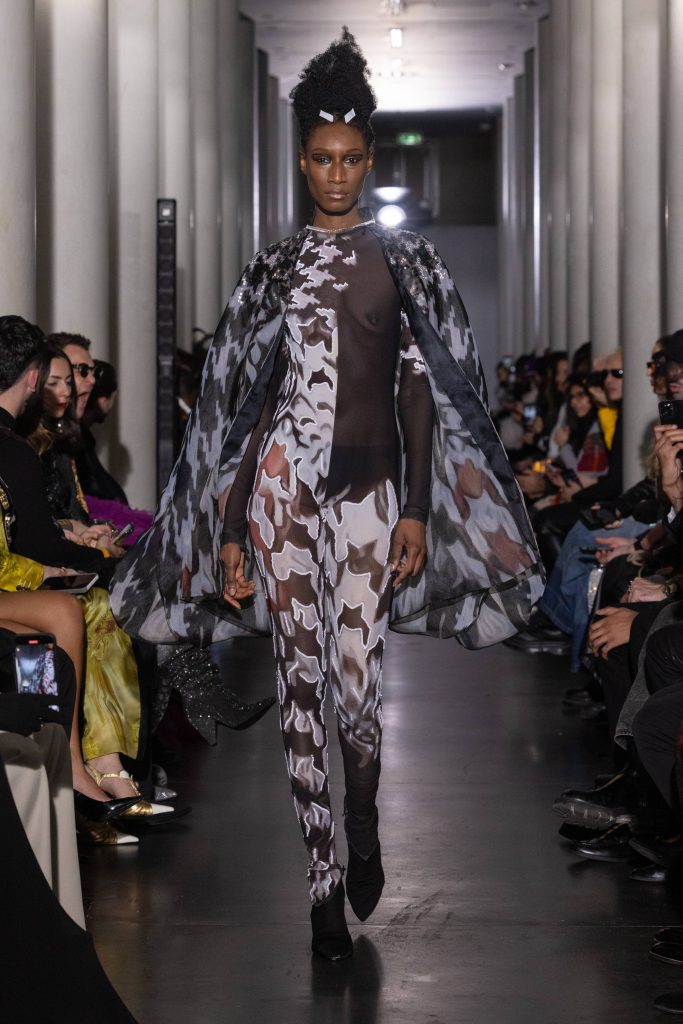 Concernant le concept du défilé, on pouvait d’ores et déjà avoir une certaine idée puisque l’on pouvait lire en grand sur l’invitation “ILLUSION”. Comme une promesse de l’extravagance et de la surprise si propre à On Aura Tout Vu. Le défilé, chorégraphié par Kamel Ouali, se veut être une véritable odyssée fascinante à travers des mirages captivants de la perception vue par les stylistes Livia Stoianova et Yassen Samouilov.