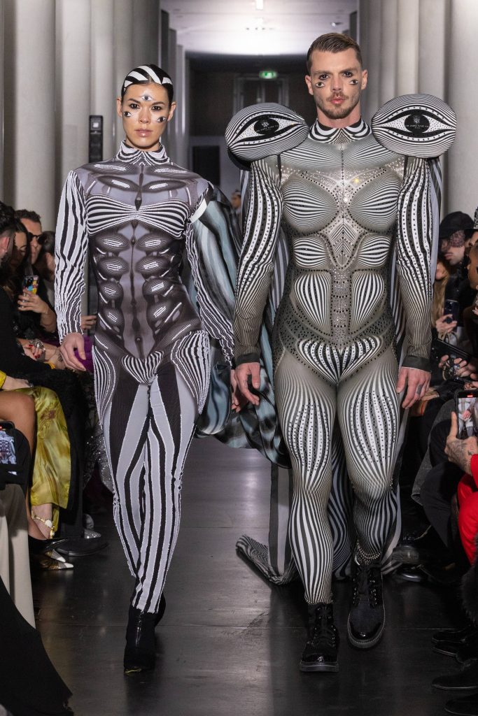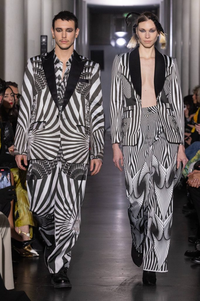 En résumé, « Magie, Fantaisie, Hallucination, Trompe-l’œil » – sont les maîtres mots qui définissent cette nouvelle collection 2024. Les silhouettes homme-femme se confondent. Seule compte l’énergie masculine et féminine qui invite à ouvrir notre troisième œil pour une meilleure perception de l’espace et de la matière.